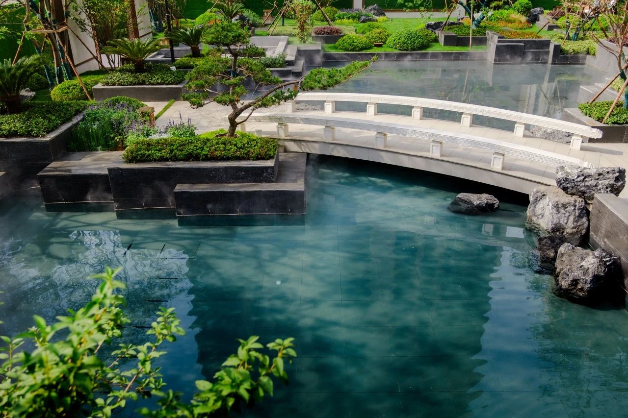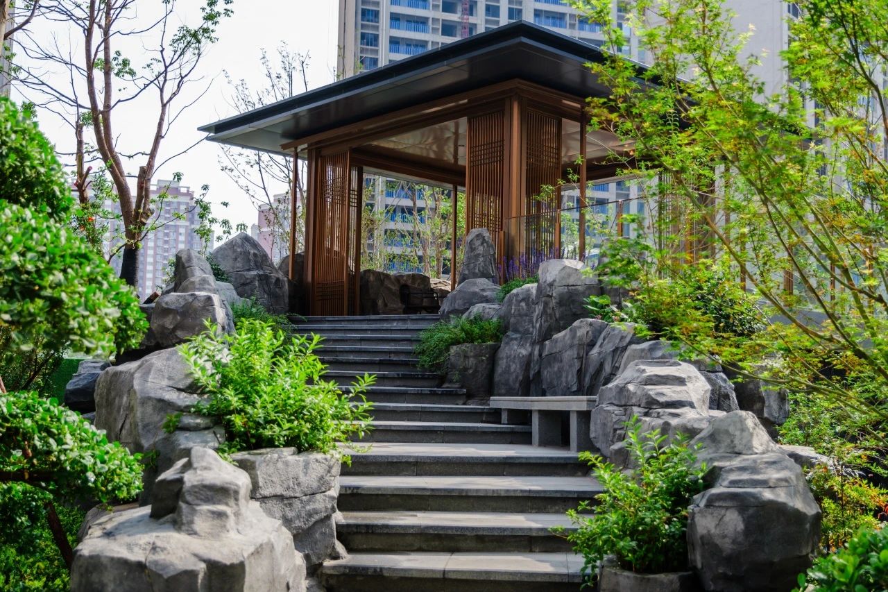 —— 漫步其間,盎然綠意撲面而來,畫卷美景渾然天成:小橋流水串聯(lián)亭臺樓閣,朗闊步道隱于層層疊翠,花木錯落間,建筑與自然共生。